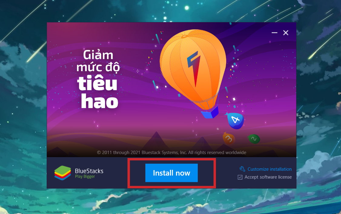 - Sau khi tải xong, chạy file .exe vừa tải về và cài đặt BlueStacks.