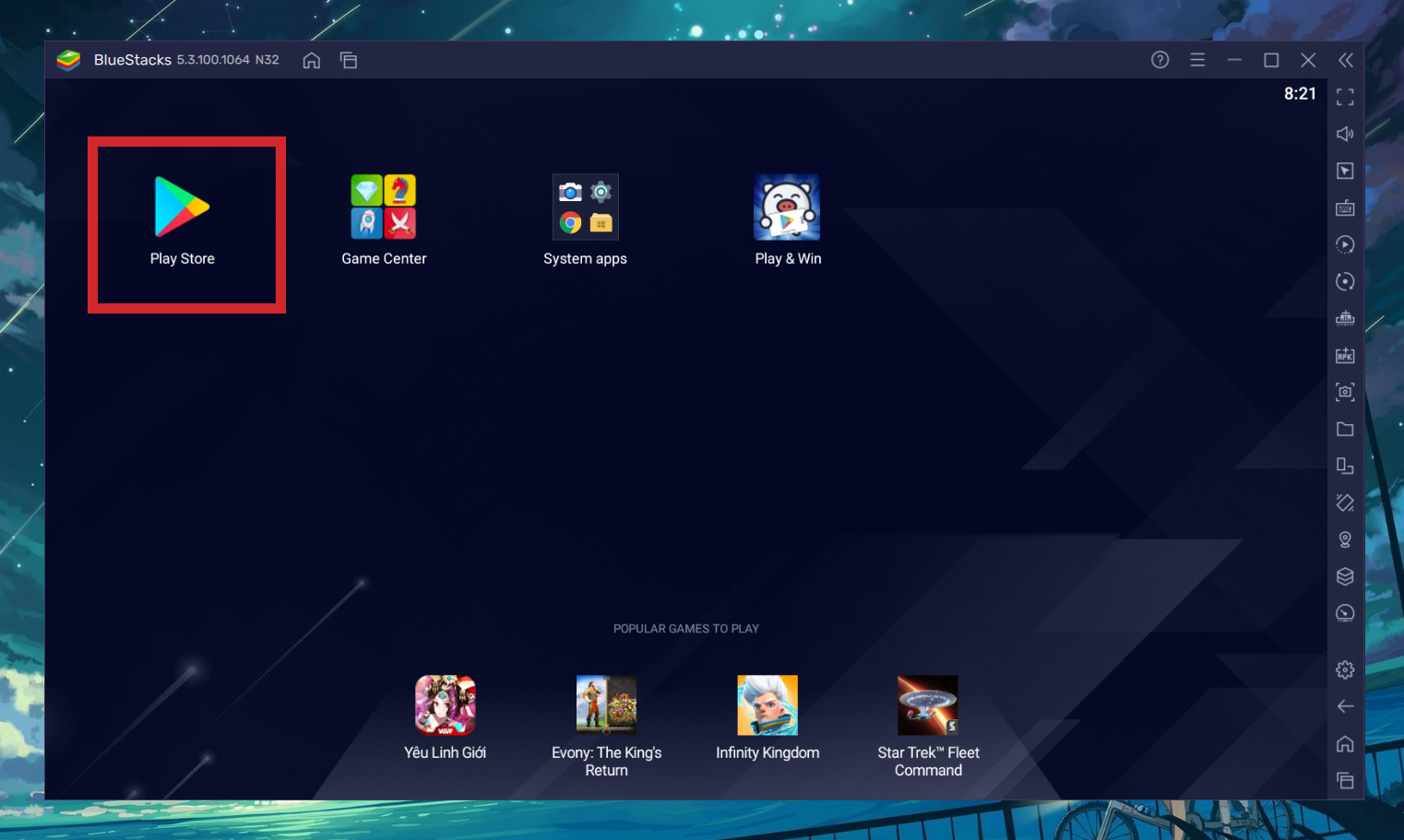 - Sau khi cài đặt xong BlueStacks, mở ứng dụng và truy cập vào Play Store.