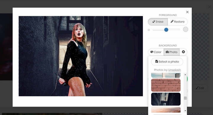 Nhấn vào “edit” niếu như bạn muốn chỉnh sửa bức ảnh hoặc bạn cũng có thể thêm background cho hình ảnh vừa mới tách nền xong .