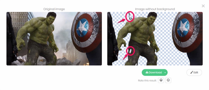 Dù đã nổ lực phát triển nâng cấp liên tục nhưng Remove.bg vẫn tồn tại hạn chế đó là những bức hình khó có vẻ như Remove.bg hoạt động không tốt lắm ảnh tách nền vẫn còn sót lại một ít phông nền chứ không thể xoá triệt để.