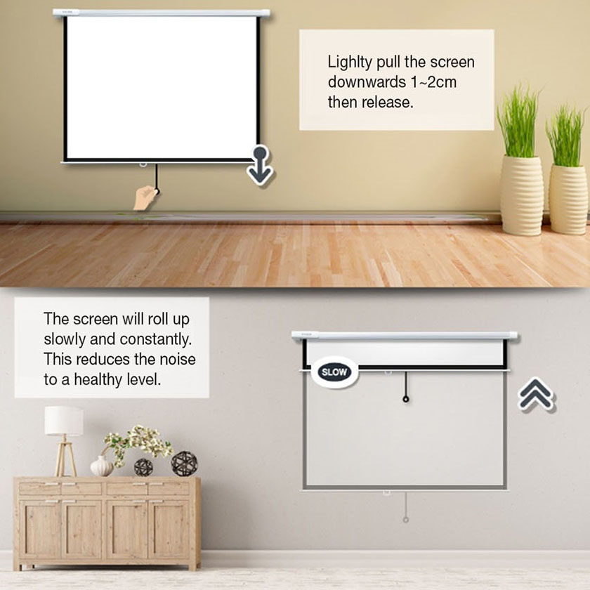 - Chọn loại màn: 3 chân đế thích hợp cho di chuyển, treo tường thích hợp lắp cố định, màn điện có thể điều khiển từ xa