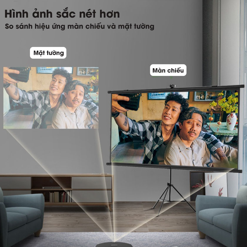 - Và đừng quên, nếu đã có sẵn máy chiếu, hãy xem xét độ tương thích giữa máy và màn để hiệu quả trình chiếu tốt hơn nhé.