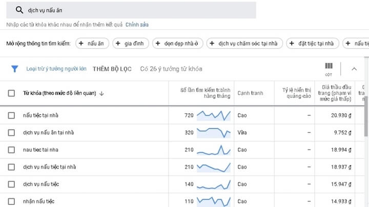 Đây là một công cụ rất gần gũi với SEOer, một công cụ tìm kiếm từ khóa miễn phí và thật sự mạnh mẽ của Google. Bạn xem được báo cáo chi tiết hiển thị, lượt click, vị trí của từng từ khóa. Điều này không chỉ giúp bạn kiểm tra được từ khóa chính đang ở vị trí nào mà nó còn gợi ý cho bạn một số từ khóa đồng nghĩa khác. Bạn có thể dựa vào đây để tạo ra các nội dung liên quan với bài viết chính, giúp từ khóa mau lên TOP Google.