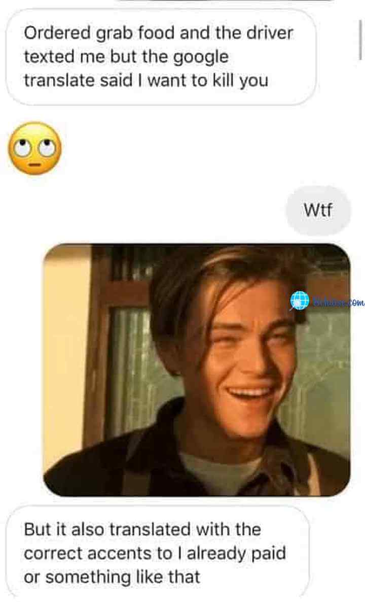 Cũng là câu chuyện về ứng dụng Grab thông qua Google dịch để hiểu đối phương muốn nói điều gì. Thế nhưng, lần này google dịch nghĩa bậy bạ nhưng tình hình vẫn khả quan hơn anh đặt hàng đêm khuya xém doạ “giết” kia rất nhiều.