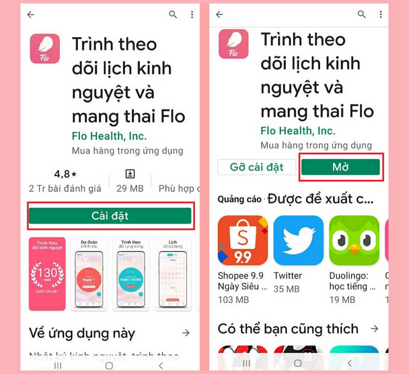 - Bước 2 : Chọn Cài Đặt để cài đặt ứng dụng lên điện thoại, chọn Mở để mở ứng dụng sau khi cài đặt thành công.