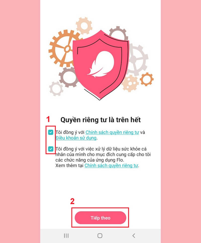 - Bước 1 : Sau khi mở ứng dụng lên bạn chọn tick vào đồng ý các điều khoảng của ứng dụng Flo > Chọn Tiếp Theo.