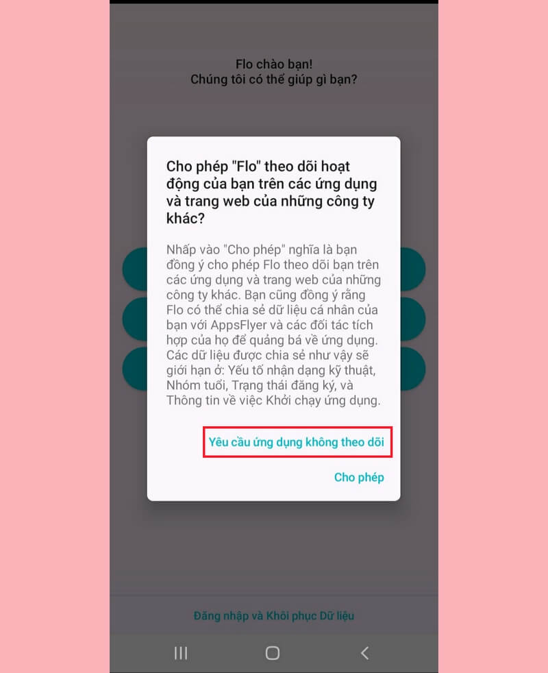 - Bước 2 : Tùy theo nhu cầu sử dụng mà bạn chọn “Cho phép”, hoặc “Yêu cầu ứng dụng không theo dõi”.