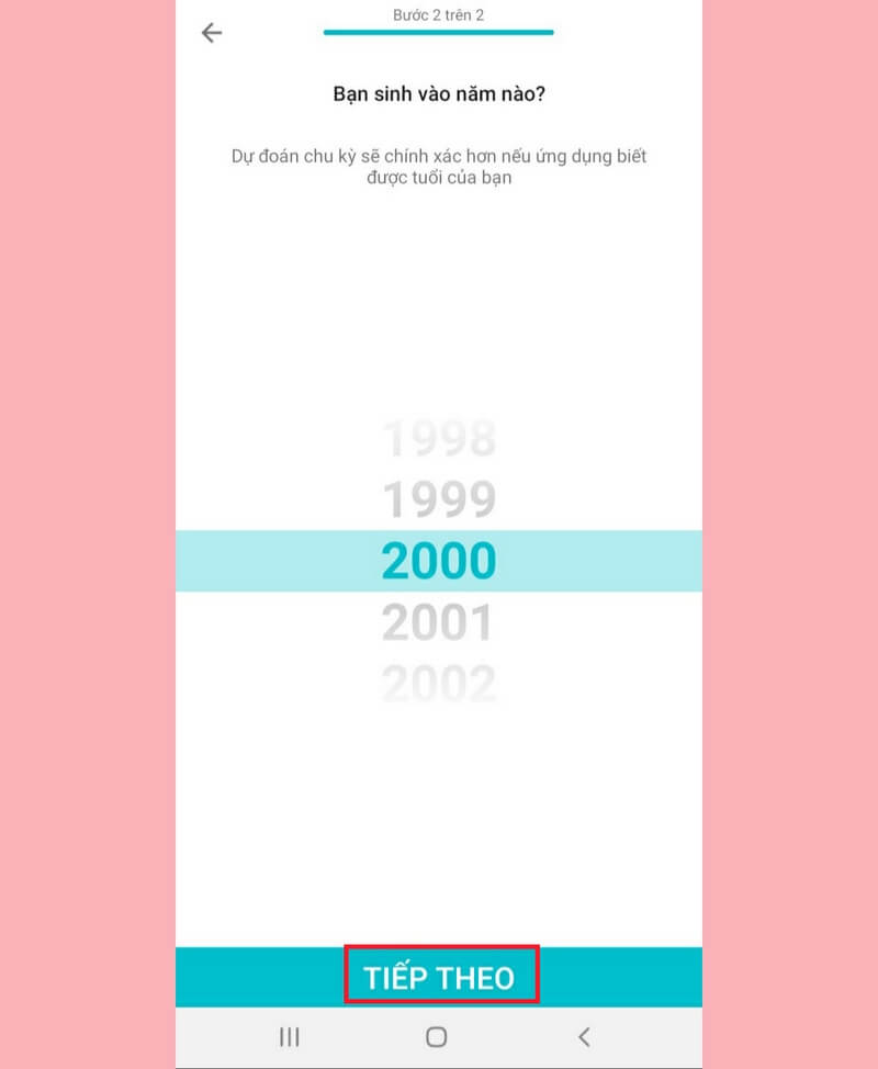 - Bước 5 : Bạn chọn năm sinh của mình, sau đó chọn “Tiếp theo”.